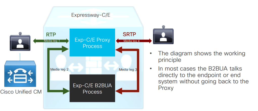 B2BUA is an application invoked by the Proxy that fully terminates a call leg and establishes a new call leg. The call legs are then bridged together and count as different calls. When using Media encryption policy other than “Auto” B2BUA gets invoked.