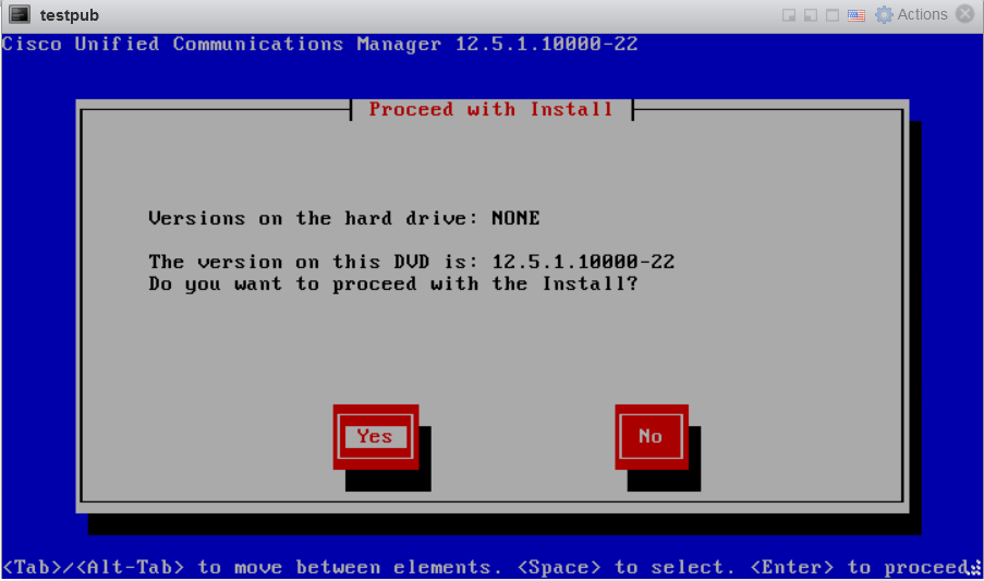 Then you get the “Proceed with instillation” screen, where you need to enter YES or NO.