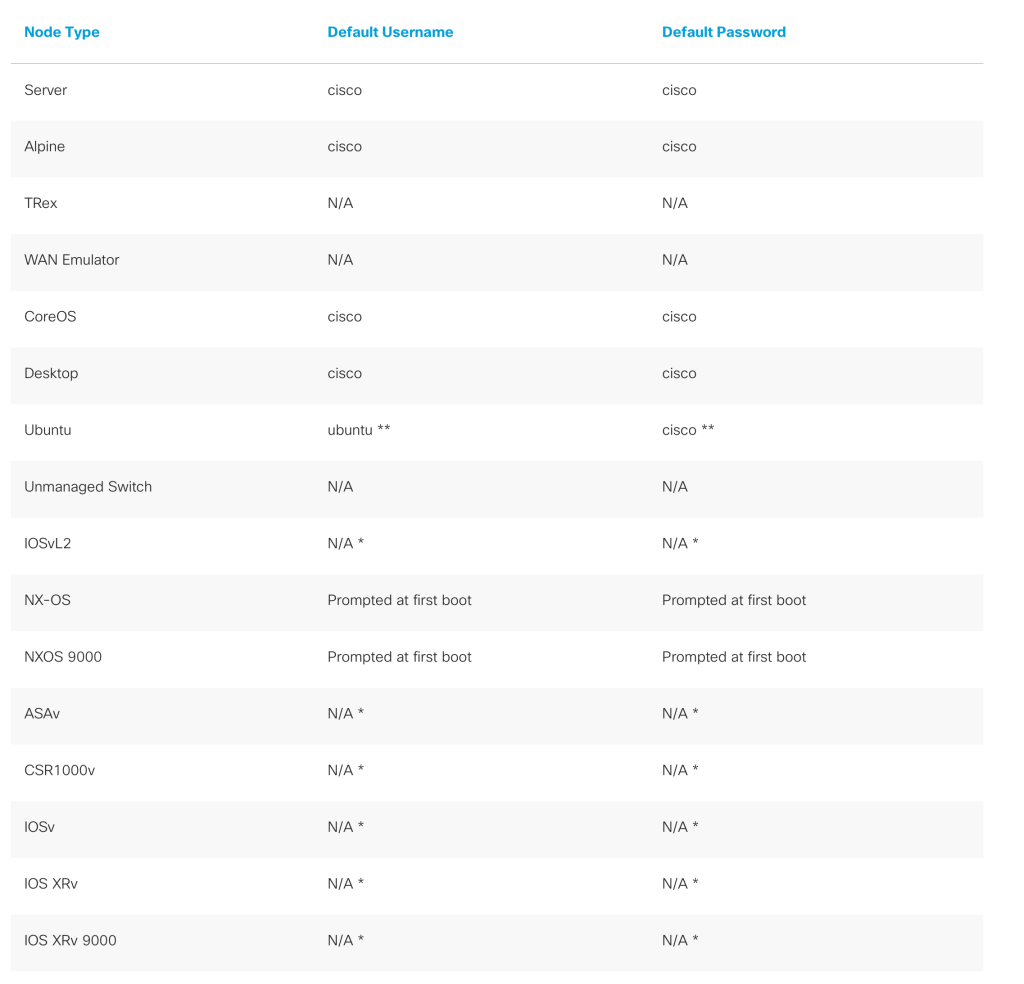 CML CML Node Logins Posted by Nithin Eluvathingal on May 24, 2021May 24, 2021 On CML, Each node type has its own default login. Use below credential for CML 2.X. Share this: Click to share on Facebook (Opens in new window) Facebook Click to share on WhatsApp (Opens in new window) WhatsApp Click to share on LinkedIn (Opens in new window) LinkedIn Click to share on X (Opens in new window) X Click to email a link to a friend (Opens in new window) Email Like Loading... Related