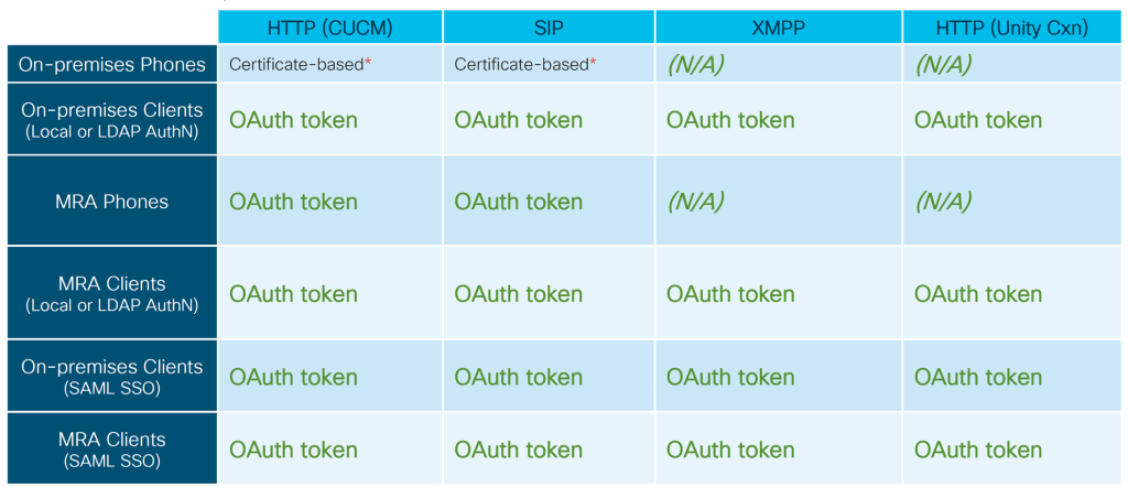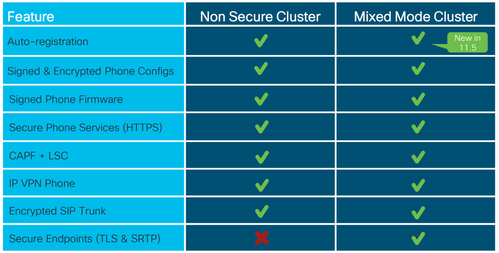 *: Requires CAPF enrollment and “mixed mode”