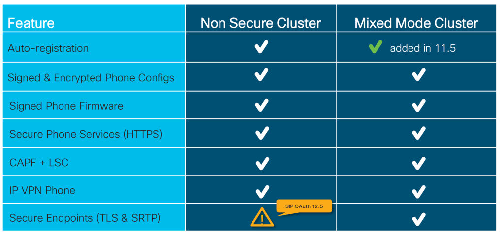No need for CAPF enrollment or “mixed mode”