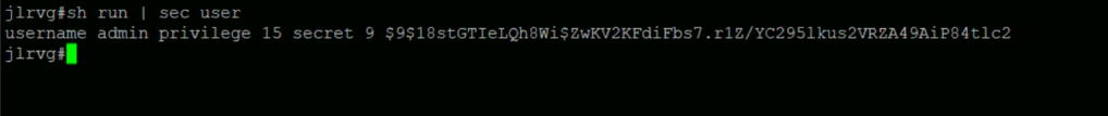 enable secret 9 $9$WnArItcQHW/uuE$x5WTLbu7PbzGDuv0fSwGKS/KURsy5a3WCQckmJp0MbE