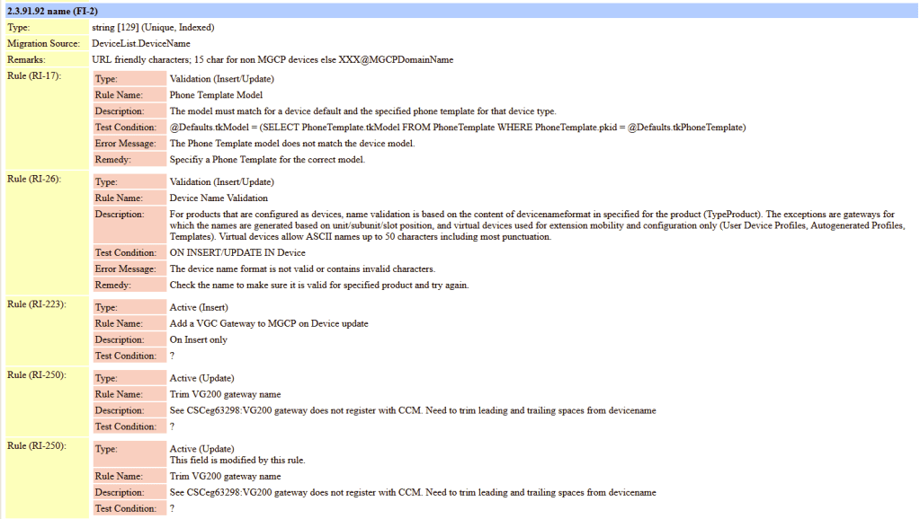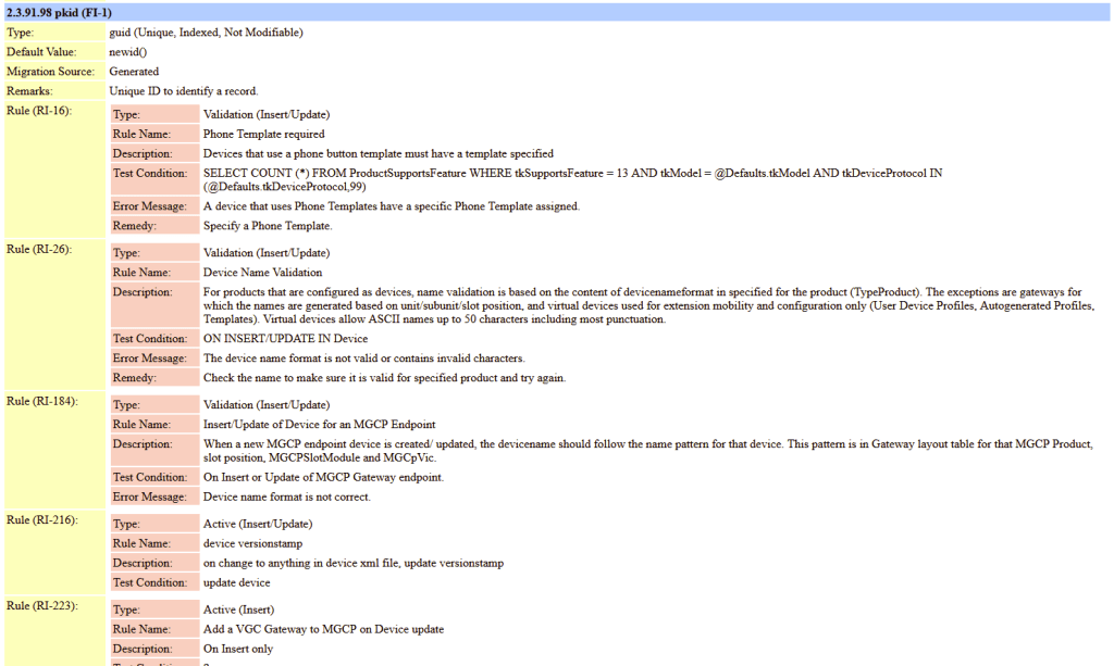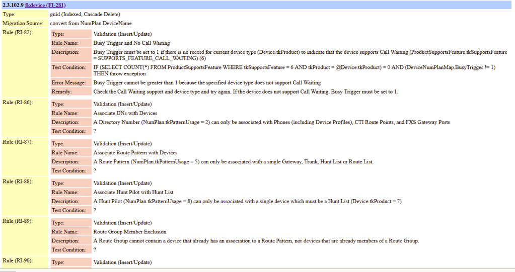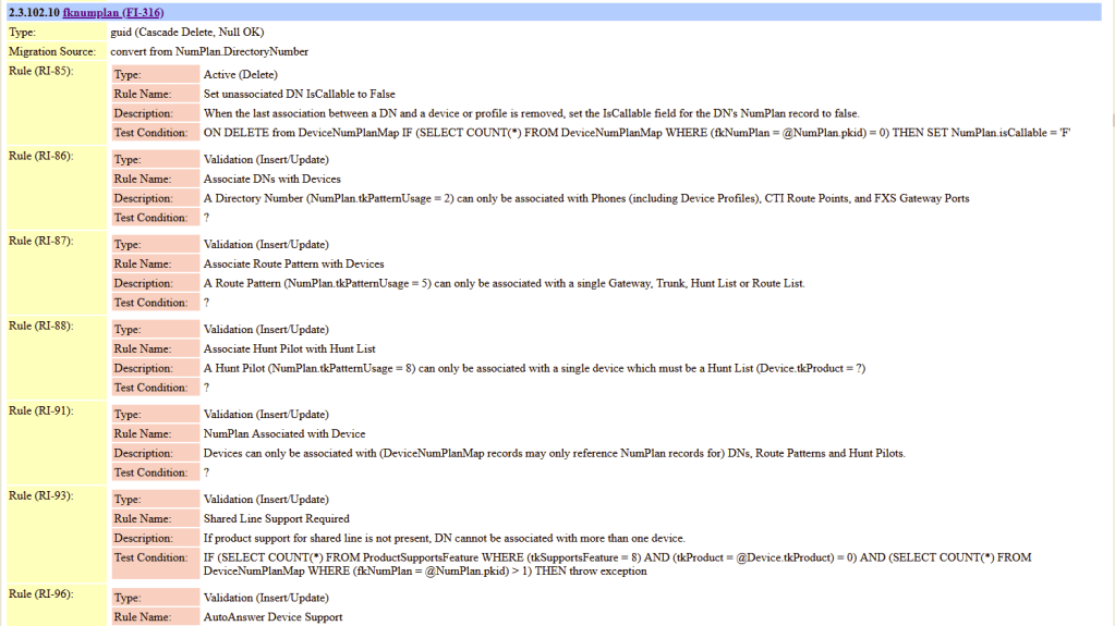 - DeviceNumPlanMap – This table contains the mapping between data in Device table and NumPlan table.