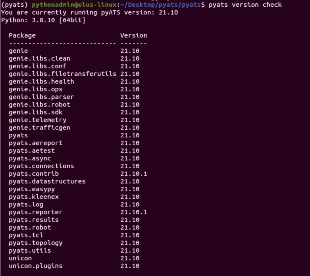 Verify PyATS versions: