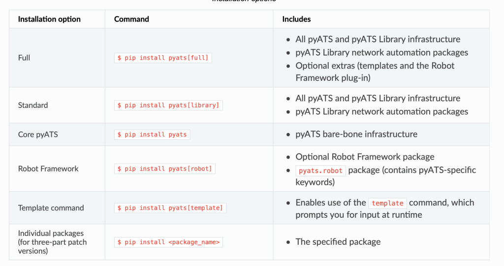 Available pyats installation options.