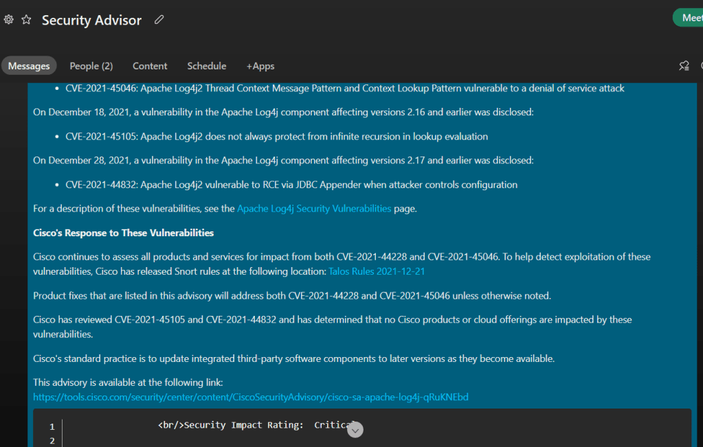 Cisco Security Advisories provide detailed information about security issues that directly involve Cisco products and require an upgrade, fix, or other customer action. Security Advisories are used to disclose vulnerabilities with a Critical, High, or Medium Security Impact Rating.