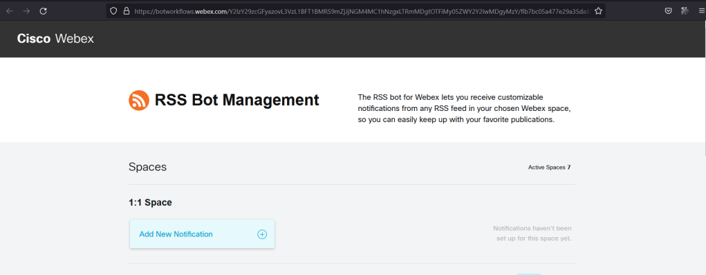 Click on RSS bot , a 1:1 space will open.Click on Manage Feed.
