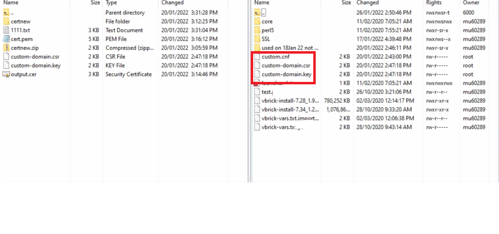 After renaming certificate, change the owner, group, and permissions of the cert.pem file.