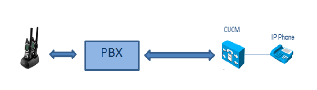 the MotoPBX system with the endpoint of a Walkie Talkie handset. When the CUCM receives the