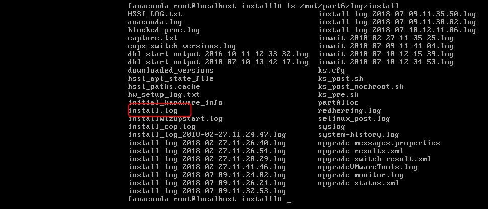 Type “df -h” to show the available partitions. The biggest partition should have the install logs. In this example, its part6.