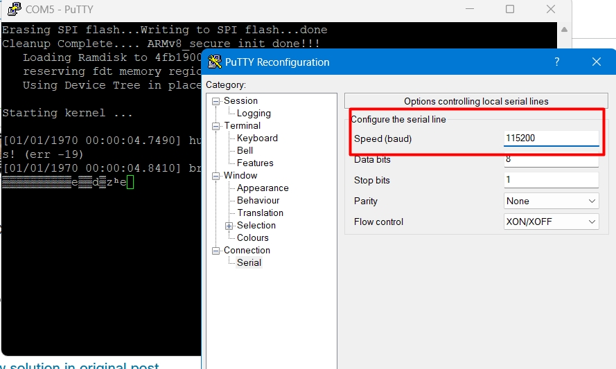 configure boot baudrate