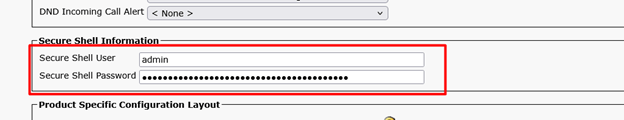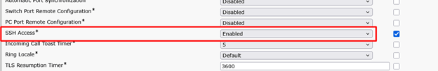 - In the Product Specific Configuration Layout section , locate SSH Access and set it to Enabled.