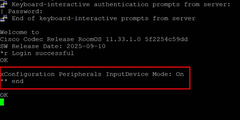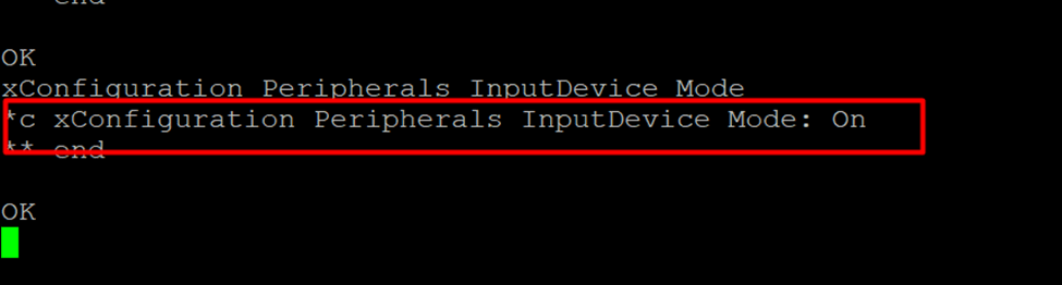 The default behavior of the input device on Cisco devices is turned OFF. You need to turn it ON by logging into the web interface of the device, clicking on Settings, and under Configurations, changing Peripherals > Input Device Mode to On or from the CLI using the command