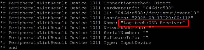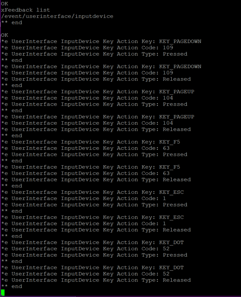 In order to program the Input and the action, we need to know the feedbacks the device registered with peripherals; issue the command