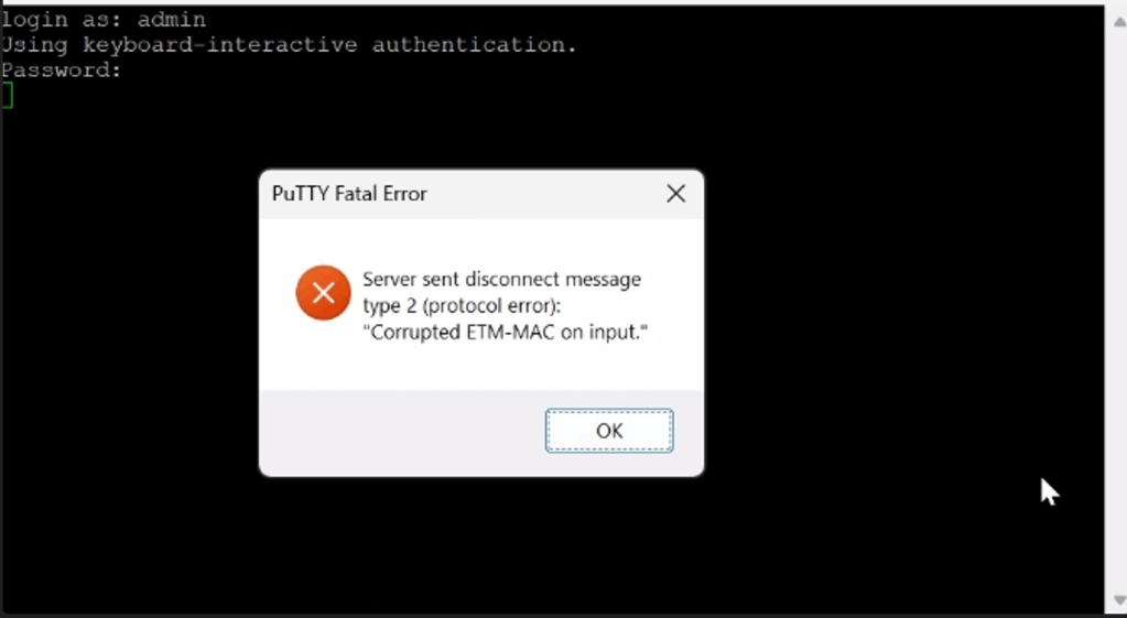 Last week, after I upgraded an ISR4K to version 17.12.64, we encountered an issue where, after entering the password while SSH to the router, i received the error below.